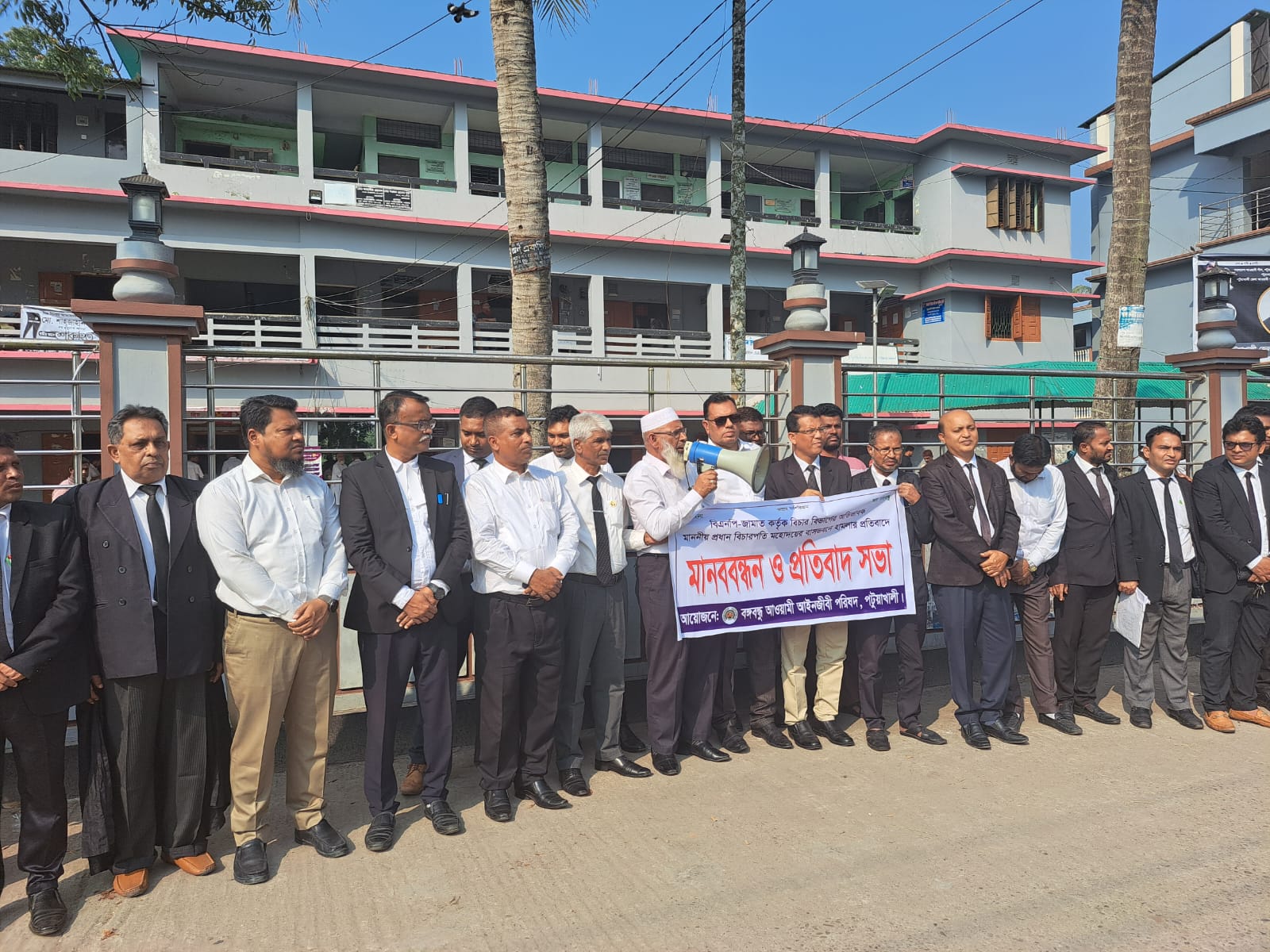 জেলা জজ আদালতের জিপি এ্যাড. শাহাবুদ্দিন বলেন, গতকাল জামাত বিএনপির মহাসমাবেশে আমাদের মাননীয় প্রধান বিচারপতি, সাংবাদিক, পুলিশ ও সাধারণ মানুষের উপর নির্যাতনের প্রতিবাদ জানাই এবং যারা এর সাথে যুক্ত ছিল তাদের আইনের আওতায় এনে বিচার নিশ্চিতের দাবি জানাই।