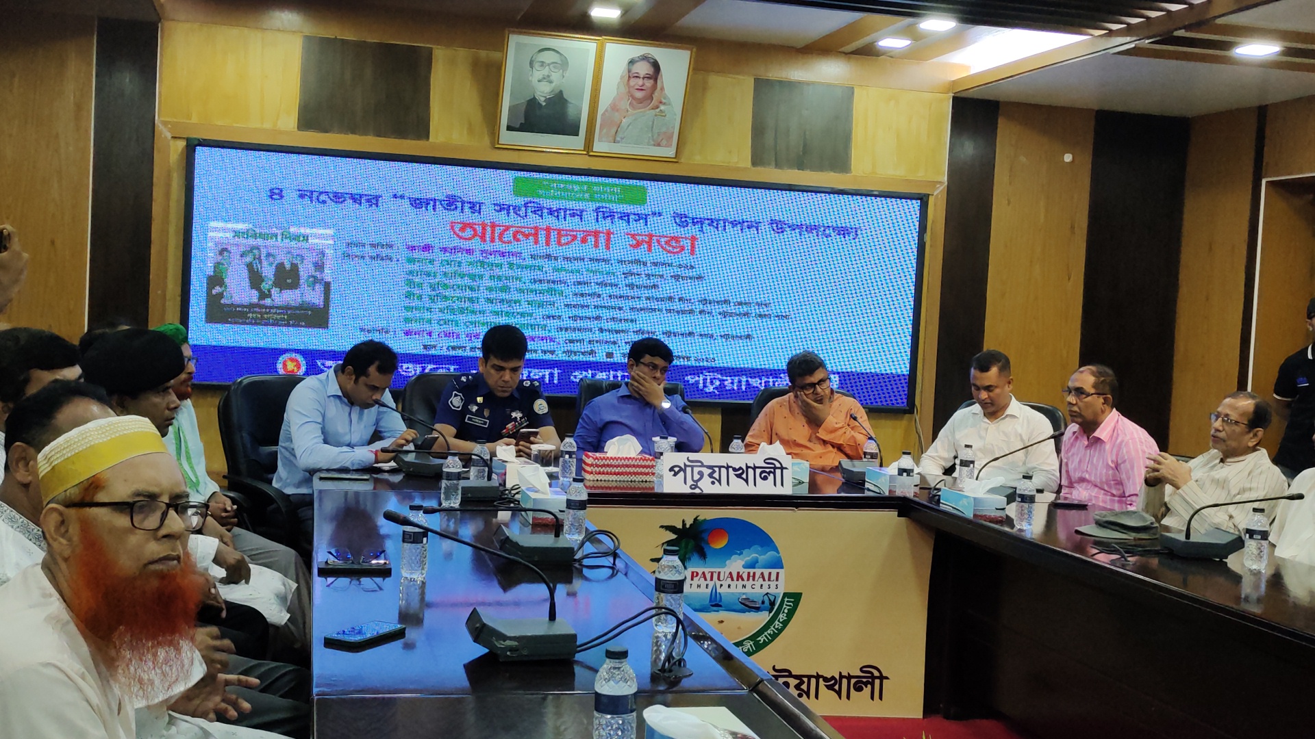 স্টাফ রিপোর্টারঃ জাতীয় সংবিধান দিবস উদযাপন উপলক্ষে পটুয়াখালী জেলা প্রশাসন এর আয়োজনে “বঙ্গবন্ধুর ভাবনা, সংবিধানের বর্ণনা” প্রতিপাদ্যে আলোচনা সভা অনুষ্ঠিত হয়েছে। শনিবার সকাল সাড়ে ১১টায় দরবার হলে জেলা প্রশাসক মোঃ নূর কুতুবুল আলম এর সভাপতিত্বে ও অতিরিক্ত জেলা ম্যাজিস্ট্রেট (এডিএম) জাদব সরকার এর সঞ্চালনায় আলোচনা সভায় আরো বক্তব্য রাখেন পটুয়াখালী পুলিশ সুপার মোঃ সাইদুল ইসলাম পিপিএম বিপিএম, জেলা পরিষদ চেয়ারম্যান এড.হাফিজুর রহমান, জেলা আওয়ামী লীগের সাধারণ সম্পাদক বীর মুক্তিযোদ্ধা ভিপি আব্দুল মান্নান ও সহ-সভাপতি শাহজাহান খান, পটুয়াখালী জেলা প্রেসক্লাবের সভাপতি আনোয়ার হোসেন ও সাধারণ সম্পাদক আব্দুস সালাম আরিফ। এসময় জেলার বিভিন্ন সরকারি বেসরকারি প্রতিষ্ঠানের কর্মকর্তা, বিভিন্ন রাজনৈতিক, সামাজিক, সাংস্কৃতিক, শিক্ষা প্রতিষ্ঠান এর শিক্ষক ও গণমাধ্যম কর্মীরা উপস্থিত ছিলেন।