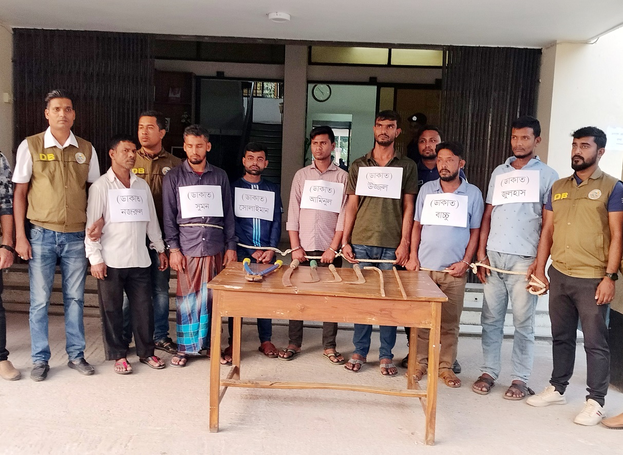 গ্রেফতার হওয়া ডাকাত সদস্যদের বিরুদ্ধে পরবর্তী আইনগত পদক্ষেপ গ্রহনের জন্য আদালতে উপস্থাপন করা হচ্ছে।