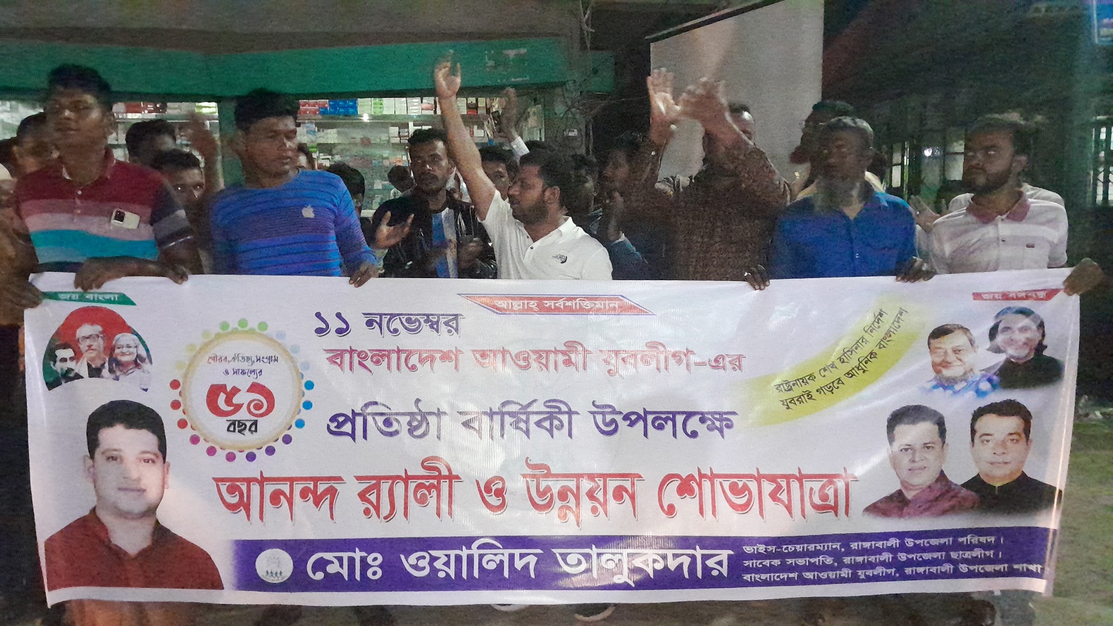 রাঙ্গাবালী প্রতিনিধিঃ আওয়ামী যুবলীগের ৫১তম প্রতিষ্ঠাবার্ষিকী উপলক্ষে পটুয়াখালীর রাঙ্গাবালী উপজেলায় নেতা কর্মীদের নিয়ে আনন্দ র্যালী ও কেক কেটে উদযাপন করা হয়েছে। শনিবার (১১ নভেম্বর) রাত ৬ টায় উপজেলার সদর ইউনিয়নের বাহেরচর বাজারে রাঙ্গাবালী উপজেলা পরিষদ ভাইস চেয়ারম্যান ও ছাত্রলীগে সাবেক সভাপতি খালিদ বিন ওয়ালিদ তালুকদার এর নেতৃত্বে এই আয়োজন করা হয়েছে। এ দিন ভিডিও চিত্রে সরকারের ১৫ বছরের উন্নয়ন চিত্র প্রদর্শিত হয়। এসময় উপজেলা ও ইউনিয়ন যুবলীগের সব ইউনিটের নেতা-কর্মীরা অংশ নেন।