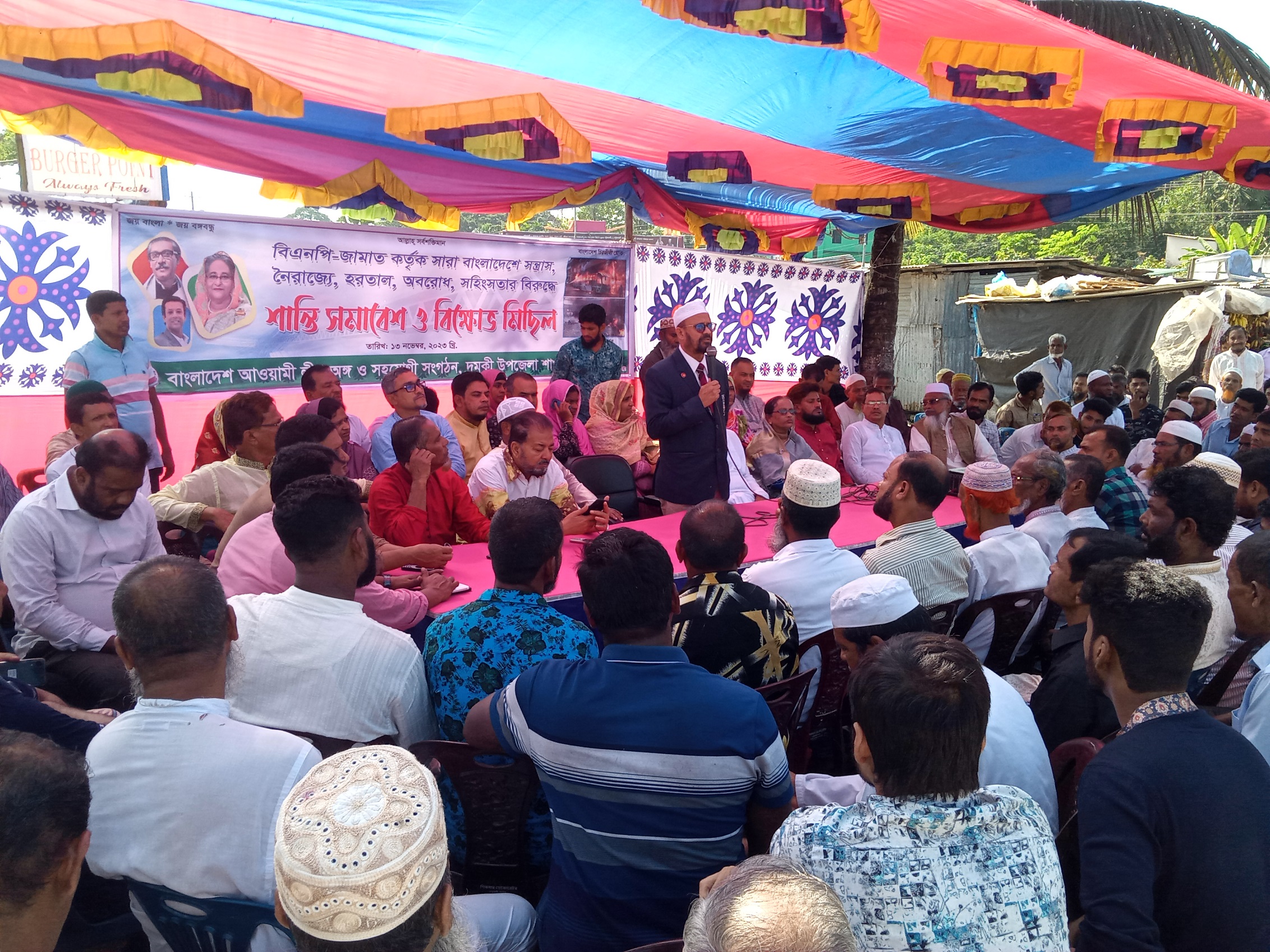 দুমকী প্রতিনিধিঃ পটুয়াখালীর দুমকিতে উপজেলা আওয়ামীলীগের উদ্যোগে শান্তি ও উন্নয়ন সমাবেশ অনুষ্ঠিত হয়েছে। সোমবার (১৩ই নভেম্বর) বেলা ১১ টায় উপজেলার লেবুখালী ইউনিয়নের পাগলার মোড় এলাকার পায়রা শপিং কমপ্লেক্সের সামনে থেকে মিছিল বের হয়ে পায়রা টোল প্লাজা ঘুরে একই স্থানে এসে সমাবেশ অনুষ্ঠিত হয়।