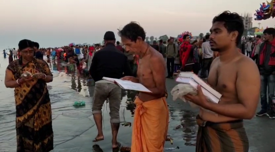 কলাপাড়া প্রতিনিধিঃ গঙ্গাস্নান বা পূন্য স্নানের মধ্য দিয়ে পটুয়াখালীর কুয়াকাটায় শেষ হয়েছে রাস উৎসবের মূল আনুষ্ঠানিকতা। সোমবার ভোর ৫ টা ৩০ মিনিটে জাগতিক সকল পাপ মোচনের আশায় সৈকতের নোনা জলে গাঁ ভাসিয়ে এ গঙ্গাস্নান সম্পন্ন করেন হিন্দুধর্মালম্বীরা। স্নানের আগে সৈকতে মোমবাতি, আগরবাতি, বেল পাতা, ফুল, ধান, দুর্বা, হরিতকী, ডাব, কলা, তেল ও সিঁদুর সমুদ্রে জলে অর্পন করে সনাতনী নারীরা। এসময় উলুধ্বনি ও মন্ত্রোপাঠে মুখরিত হয়ে ওঠে পুরো সৈকত। এছাড়া মাথান্যাড়াসহ প্রায়শ্চিত্ত ও পিন্ডদান করেন অনেক মানতকারীরা। পরে ১৭ জোড়া যুগল প্রতিমা দর্শন করেন হিন্দুধর্মালম্বীরা। ধর্মীয় আচার অনুষ্ঠানের মাধ্যমে কুয়াকাটায় রাসলীলা শেষ হলেও কলাপাড়ার শ্রী শ্রী মদনমোহন সেবাশ্রমে এ উৎসব চলবে আরও ৫ দিন।