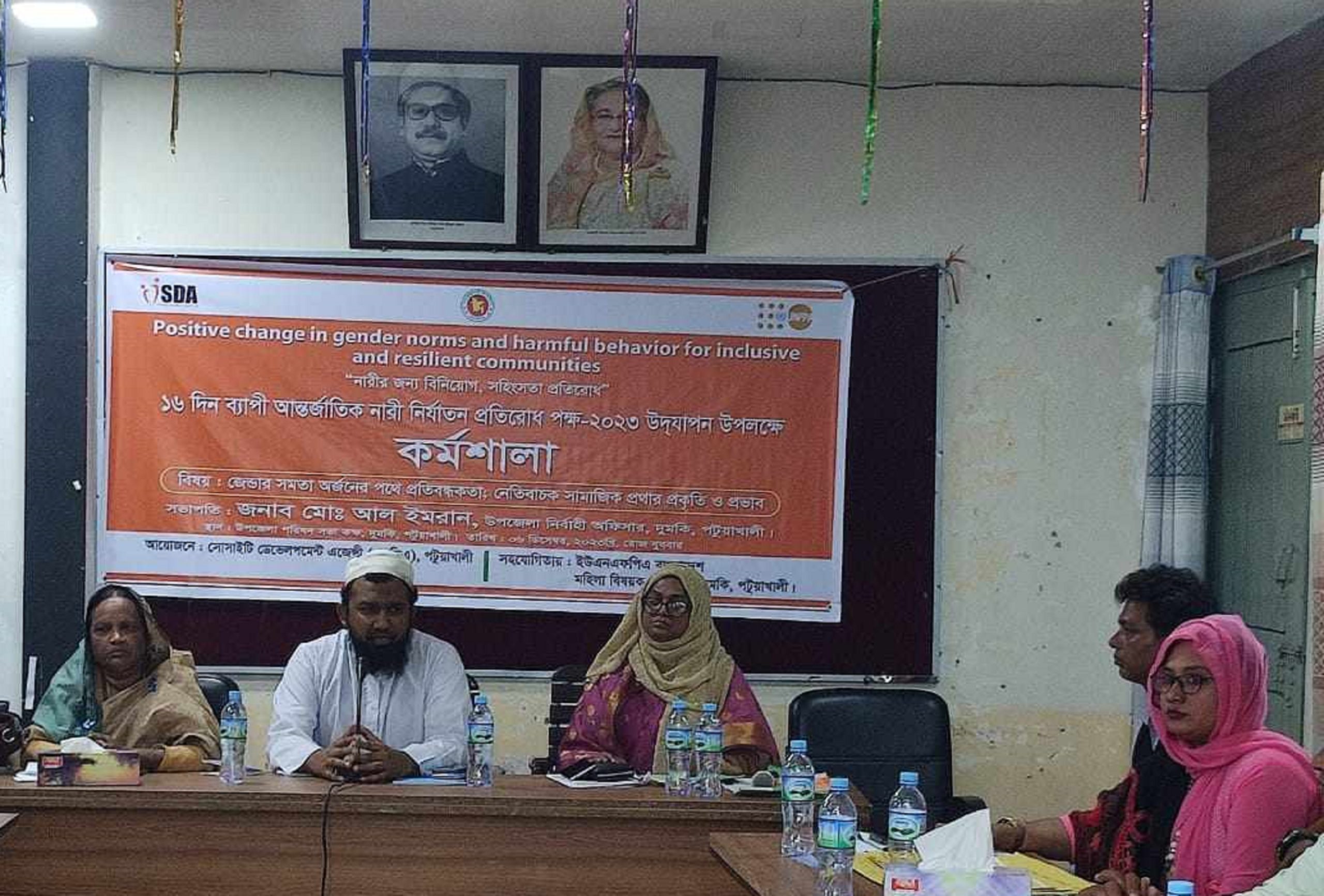 দুমকী প্রতিনিধি: “নারীর জন্য বিনিয়োগ, সহিংসতা প্রতিরোধ” এ প্রতিপাদ্যে সোসাইটি ডেভলপমেন্ট এজেন্সি (এসডিএ)’র আয়োজনে, ইউএনএফপিএ বাংলাদেশ, মহিলা বিষয়ক অধিদপ্তর দুমকী’র সহযোগিতায় ১৬দিন ব্যাপী আন্তর্জাতিক নারী নির্যাতন প্রতিরোধ পক্ষ-২০২৩ উদযাপন উপলক্ষে জেন্ডার সমতা অর্জনের পথে প্রতিবন্ধকতা; নেতিবাচক সামাজিক প্রথার প্রকৃতি ও প্রভাবের উপর এক কর্মশালা অনুষ্ঠিত হয়।