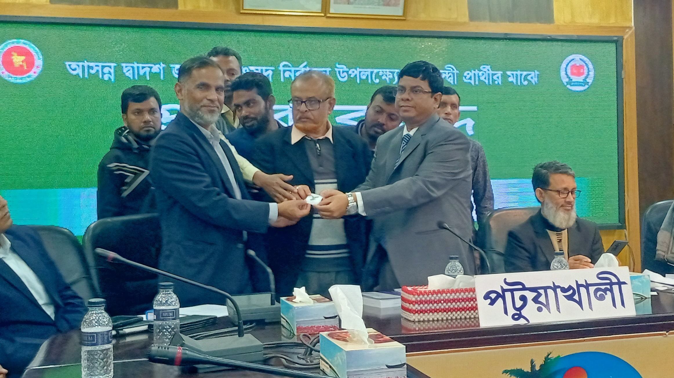 সাথী প্রতিবেদক: পটুয়াখালী জেলা প্রশাসকের সম্মেলন কক্ষে জেলার ৪টি আসনের ২২ জন প্রার্থীর মাঝে প্রতীক বরাদ্দ দেন জেলা রিটার্নিং অফিসার ও জেলা প্রশাসক মো. নূর কুতুবুল আলম। এ সময় উপস্থিত ছিলেন জেলা নির্বাচন অফিসার খান আবির মোহাম্মদ শাহানুর খান, জেলা আওয়ামী লীগের সভাপতি কাজী আলমগীর, সাধারন সম্পাদক ভিপি আব্দুল মান্নানসহ নির্বাচন সংশ্লিষ্ট অন্যান্য কর্মকর্তাবৃন্দ।