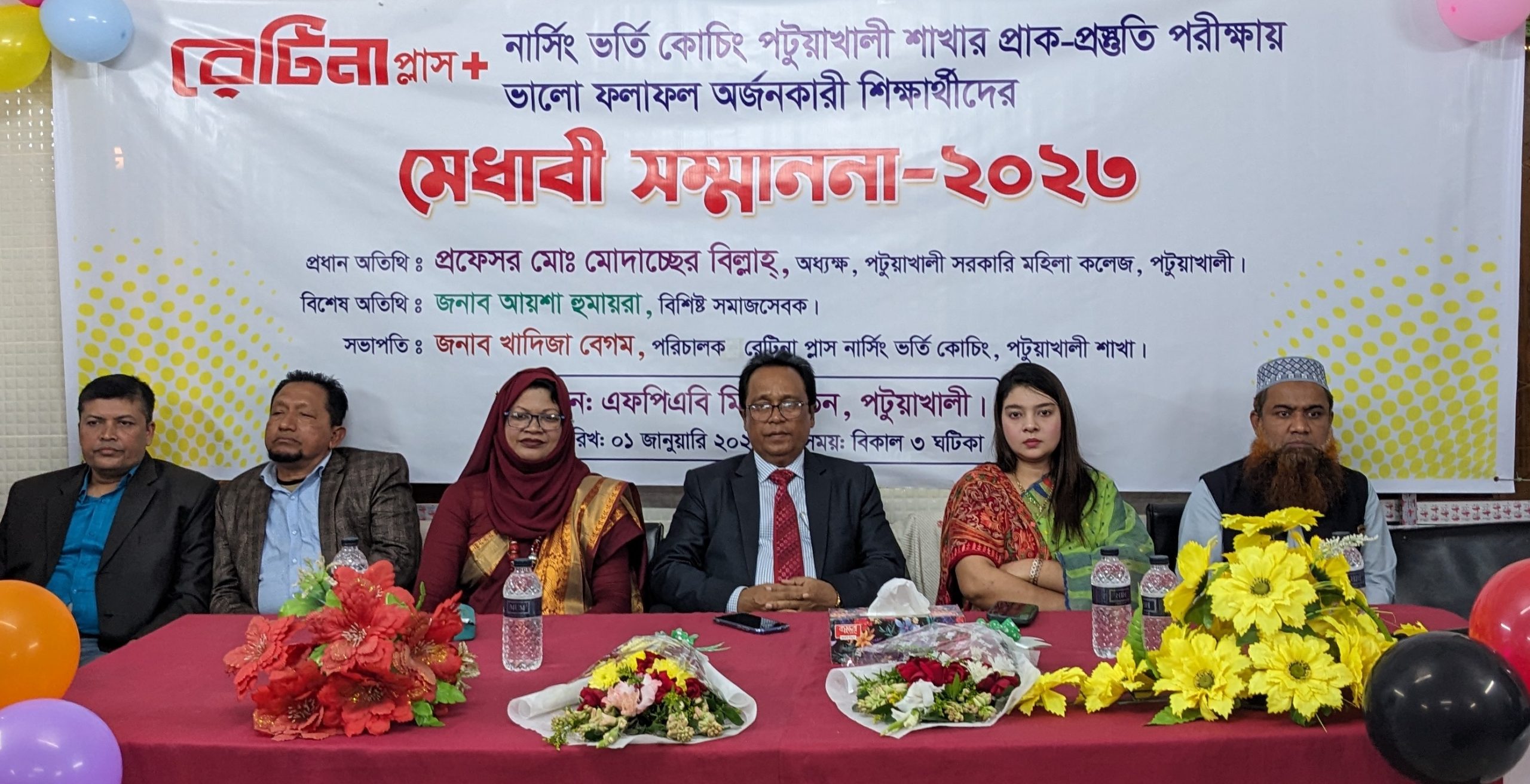 সাথী প্রতিবেদকঃ রেটিনা প্লাস নার্সিং ভর্তি কোচিং পটুয়াখালী শাখার প্রাক-প্রস্তুতি পরীক্ষায় ভালো ফলাফল অর্জনকারী মেধাবী শিক্ষার্থীদের সম্মাননা প্রদান করা হয়েছে। সোমবার বিকেলে এফএবি মিলনায়তনে এক জমকালো আয়োজনের মধ্যদিয়ে মেধাবী শিক্ষার্থীদের এ সম্মাননা দেওয়া হয়।