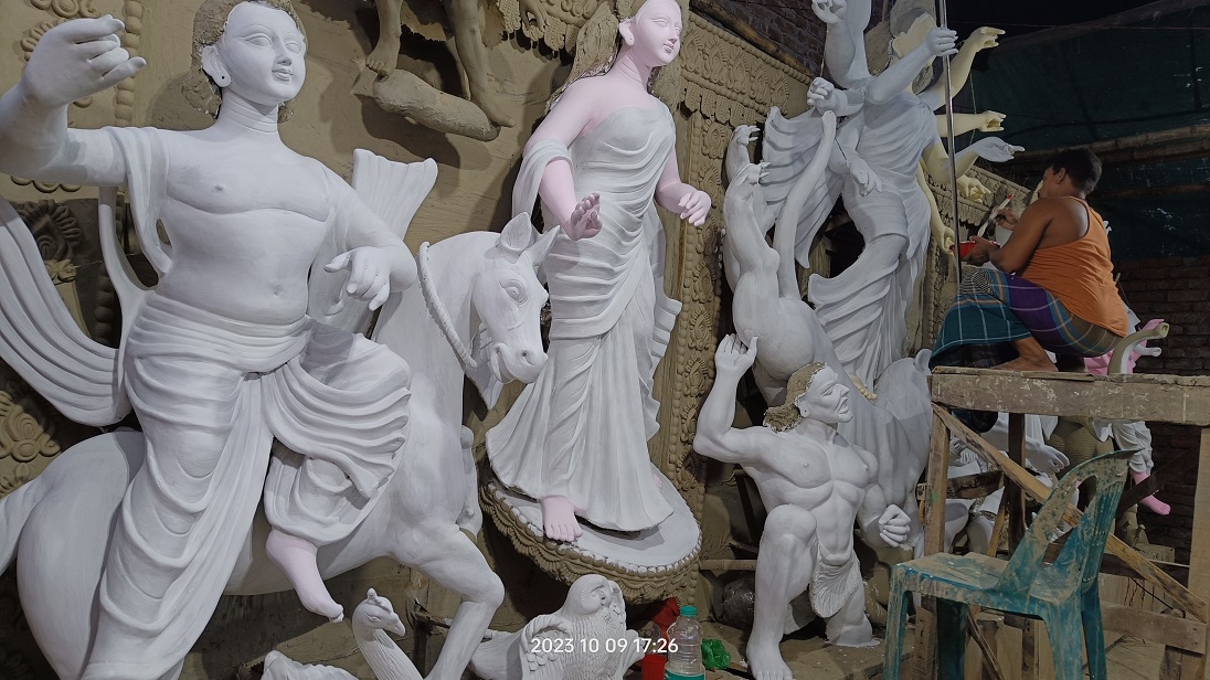 পূজামন্ডপ ঘুরে দেখা গেছে প্রতিমা তৈরীর কারিগররা কাঁদা-মাটি, বাঁশ, খড় দিয়ে তিল তিল করে প্রতিমা তৈরী করছেন, মৃৎ শিল্পিদের ছোঁয়ায় অপরূপ সাজে সজ্জিত হচ্ছে দেবী দূর্গা, লক্ষ্মী, সরস্বতী, কার্তিক, গনেশ ও অসুর সহ বিভিন্ন দেবদেবীর প্রতিমা। অপর দিকে ইভেন্ট ম্যানেজন্টের লোকজন মন্দিরের সাজসজ্জার কাজে ব্যস্ত রয়েছেন, লাইটিং এর কাজে ব্যস্ত সময় পার করছেন ডেকরেশনের লোকজন সব মিলিয়ে ব্যাপক প্রস্তুতি চলছে প্রত্যেকটি পূজা মন্ডপে। সনাতন ধর্মালম্বীদের সবচেয়ে বড় ধর্মীয় এ উৎসবকে ঘিরে চলছে নানা প্রস্তুতি।