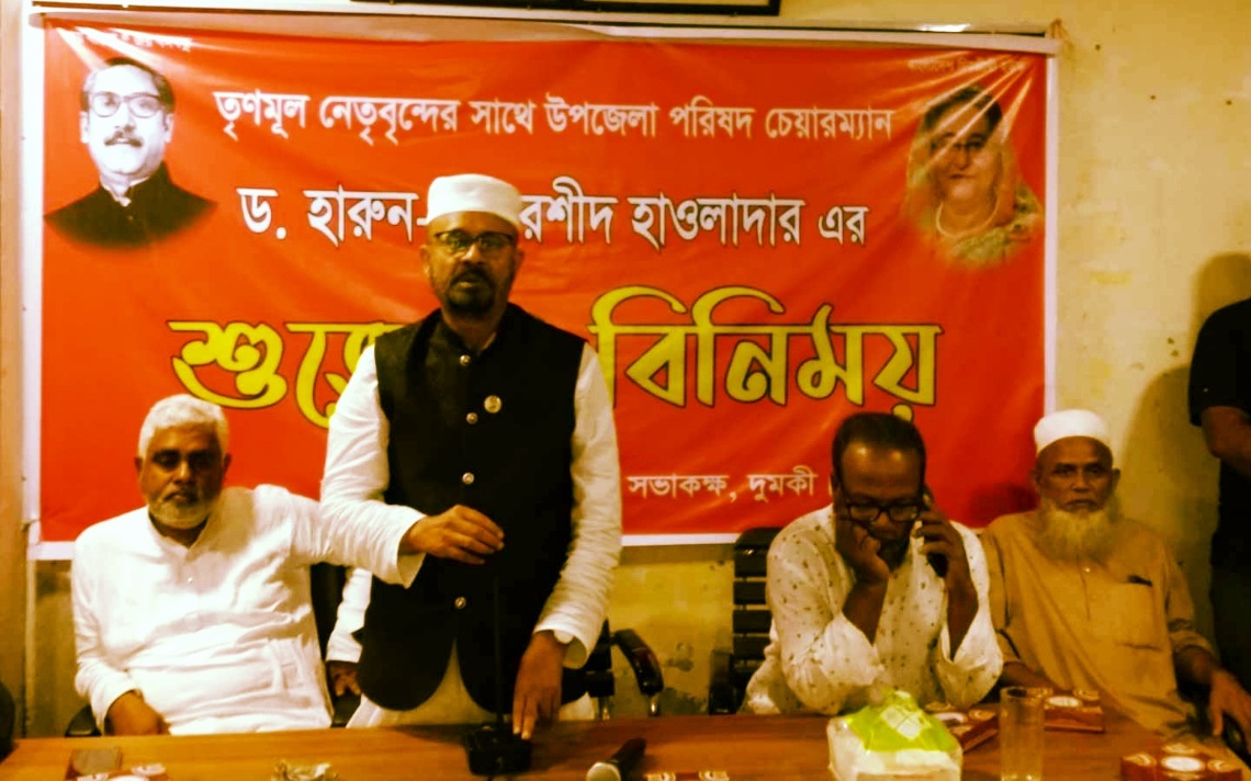দুমকি প্রতিনিধি: আগামী দ্বাদশ জাতীয় সংসদ নির্বাচনে মনোনয়ন প্রত্যাশী ড. হারন অর রশীদ হাওলাদারের উদ্যোগে দুমকীতে মতবিনিময় সভা অনুষ্ঠিত হয়েছে। দুমকি উপজেলা আওয়ামীলীগ নেতাকর্মীদের সাথে মতবিনিময় করেছেন পটুয়াখলী-১ আসনে আওয়ামীলীগ থেকে নৌকার মনোনয়ন প্রত্যাশী জেলা আওয়ামীলীগের সদস্য, দুমকি উপজেলা পরিষদের চেয়ারম্যান ড,হারুন অর রশীদ হাওলাদার।