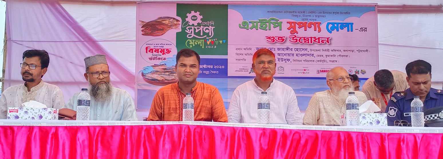 কলাপাড়া প্রতিনিধিঃ বাংলাদেশের দক্ষিনাঞ্চলে পরিবেশ বান্ধব উপায়ে নিরাপদ শুটকি উৎপাদনকারী উদ্যেক্তা তৈরি ও প্রসারের ব্যবস্থা গ্রহনের জন্য স্বেচ্ছাসেবি সংগঠন সংগ্রামের ব্যবস্থাপনায় প্রথমবারের মতো কুয়াকাটা সমুদ্র সৈকতে এসইপি ও শুটকি প্রকল্পের উদ্দোক্তাদের নিয়ে এসইপি – সুপণ্য মেলা -২০২৩ শুরু হয়েছে।